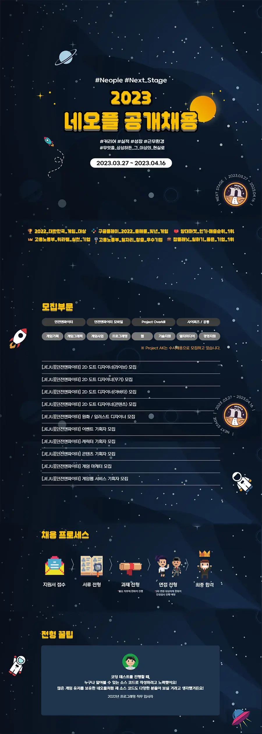▲ 위 링크 클릭시 2023 네오플 공개채용 페이지로 이동합니다.
