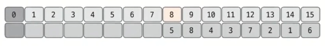ex) {5, 8, 4, 3, 7, 2, 1, 6} 인경우, 2^k를 시작 인덱스로 취해 준다.