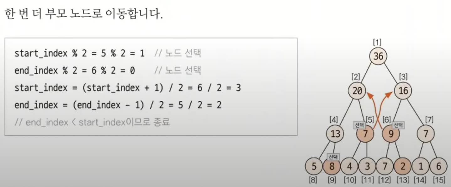 - end_index depth 변경 : end_index = (end_index - 1) / 2 연산을 실행